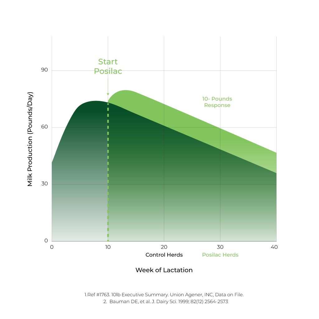 - A healthy cow supplemented with Posilac® produces an average of 10 more pounds of milk per day.
